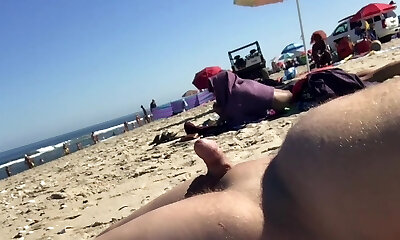 exhibitionniste transexuelle sexy caresse une grosse bite non coupée sur la plage