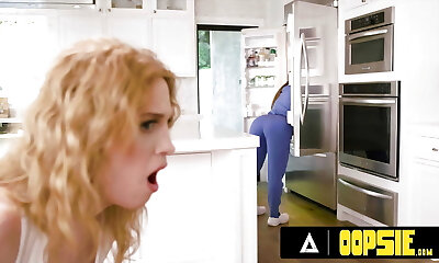 OOPSIE - Naughty Trans Ariel Demure and Erica Virgin Drop Summer Hart's Yoga Trousers to DP Her Hard