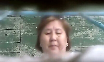 Mature Japanese lady in the shabby toilet room filmed on hidden cam